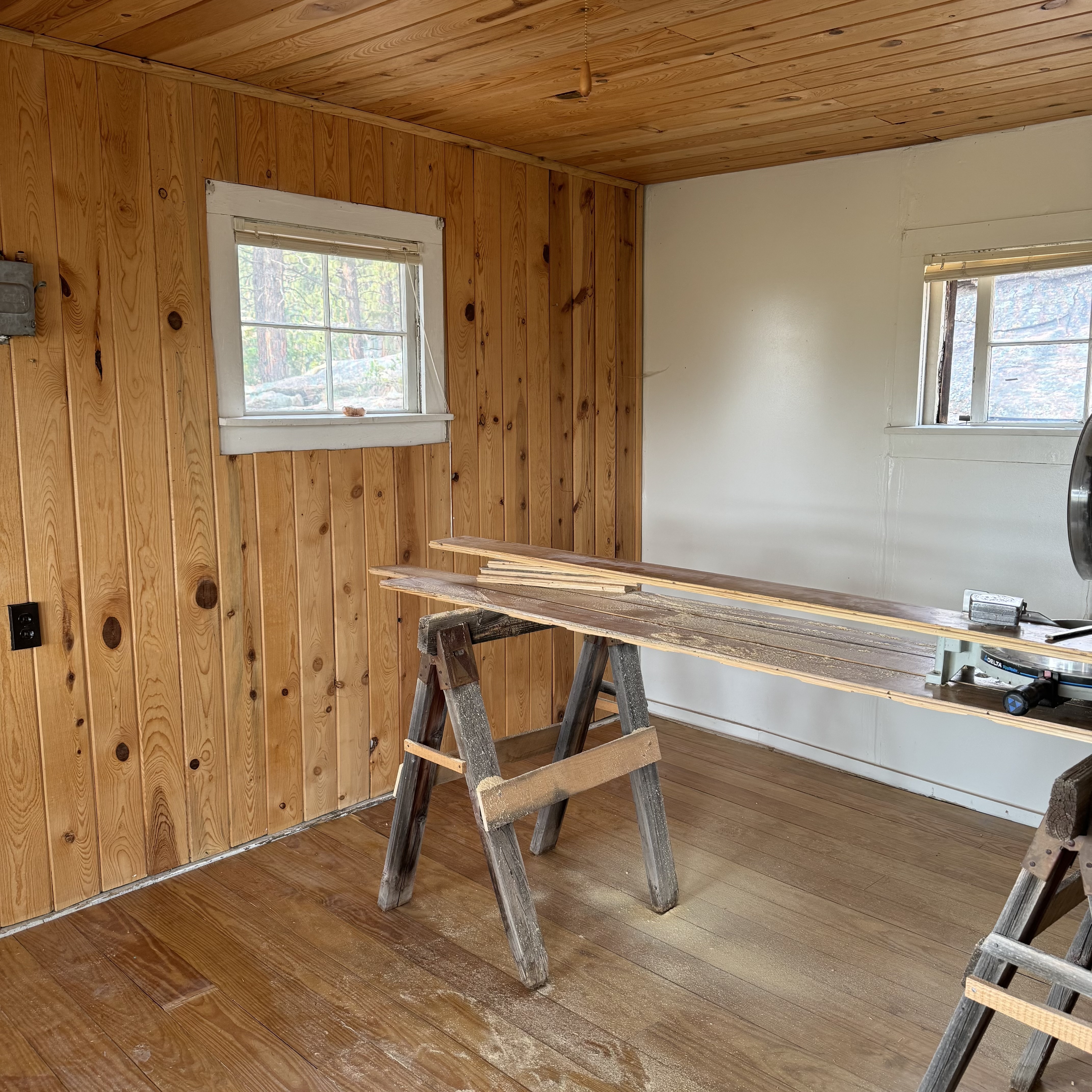 3. Remodeling the A-frame cabin - windows, flooring, new doors, porch, electrical work ~ $15,000